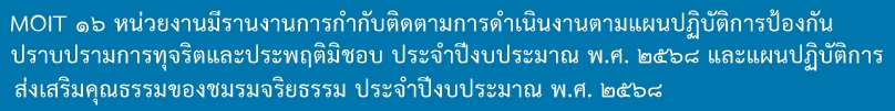 1. รายงานผลการดำเนินงานตามแผนปฏิบัติการป้องกัน ปราบปรามการทุจริต และประพฤติมิชอบของหน่วยงาน ประจำปีงบประมาณ พ.ศ. 2568 (รอบ 12 เดือน)