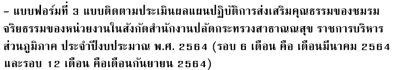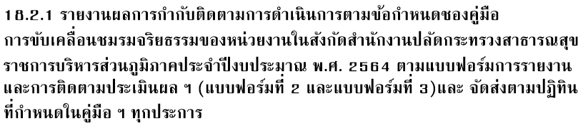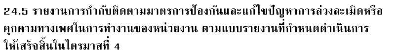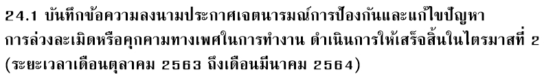 | >>?แบบรายงานผลการดำเนินงานตามมาตรการป้องกันและแก้ไขปัญหาการล่วงละเมิดหรือคุกคามทางเพศในการทำงาน ประจำปีงบประมาณ 2564 | ? |