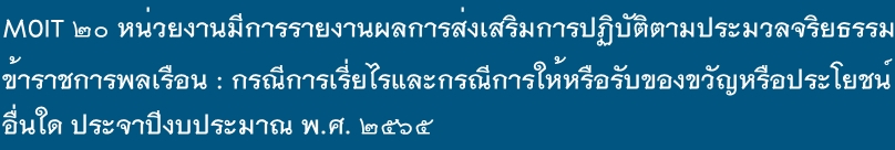 2.รายงานการเรี่ยไรและการให้หรือรับของขวัญหรือประโยชน์อื่นใดที่ได้จากระบบ MSRS (แนบตามข้อ 1.) รอบ 6 เดือน ภายในวันที่ 15 มีนาคม 2565 รอบ 12 เดือน ภายในวันที่ 31 สิงหาคม 2565 |