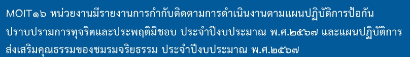 1. รายงานผลการดำเนินงานตามแผนปฏิบัติการป้องกัน ปราบปรามการทุจริต และประพฤติมิชอบของหน่วยงาน ประจำปีงบประมาณ พ.ศ. 2567 (รอบ 12 เดือน)